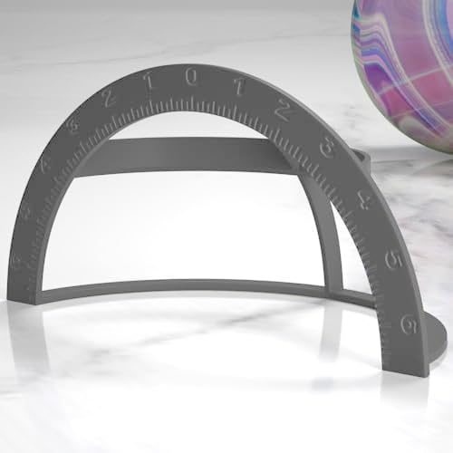 This a 3D printed bowling ball quarter scale which is used to place layouts on bowling ballsIt has the Inch marks on the front with 1/8″ 1/4″ and 1/2″ marksThe back arch has degree markings on it, center back is 0 and to both sides up to 90 degreeMarkers are in 1 degree and 10 degree increments